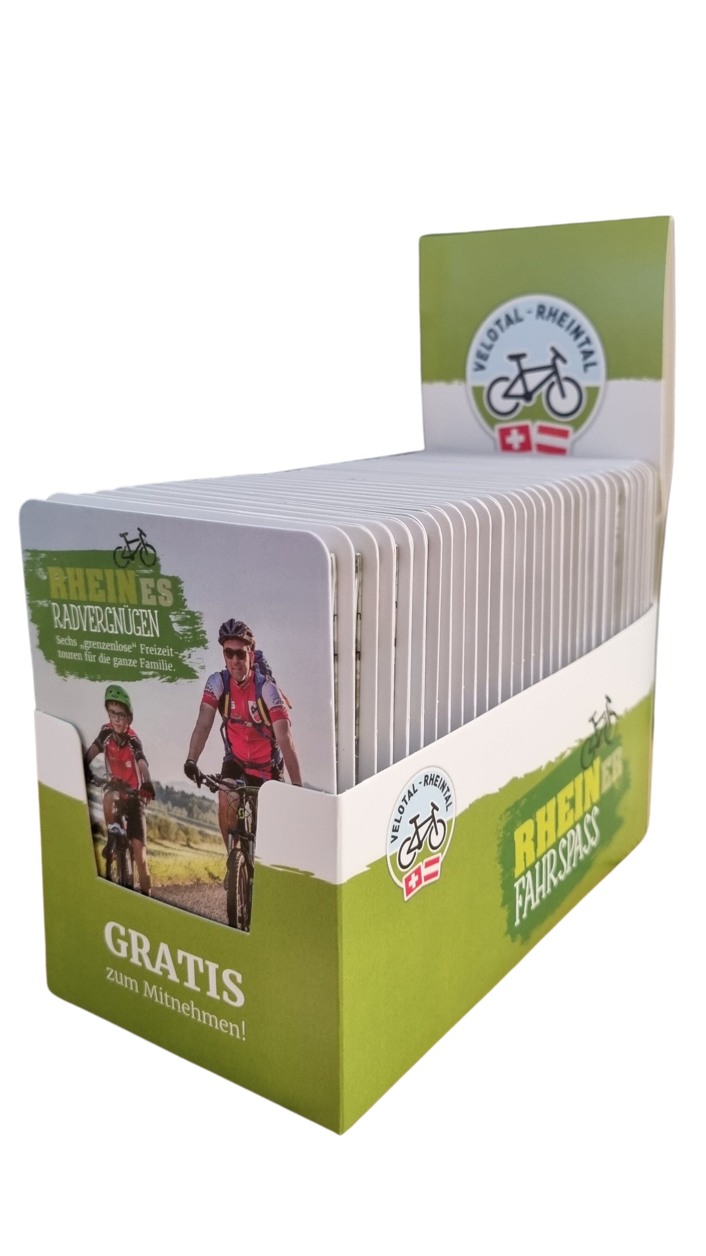 Velotal Rheintal ist eine Initiative des Landes, des Kantons und der Gemeinden des Vorarlberger und St. Galler Rheintals. Ziel ist es, die Freude am Radfahren östlich und westlich des Rheins und vor allem grenzüberschreitend zu wecken und zu fördern. Die Talebene im Rheintal bietet beste Voraussetzungen, um das Fahrrad zu nutzen – sowohl sportlich in der Freizeit als auch für die alltägliche Mobilität. Velotal Rheintal will auf das bereits bestehende Radwege-Netz hinweisen und dieses künftig verbessern und ausbauen. – mehr